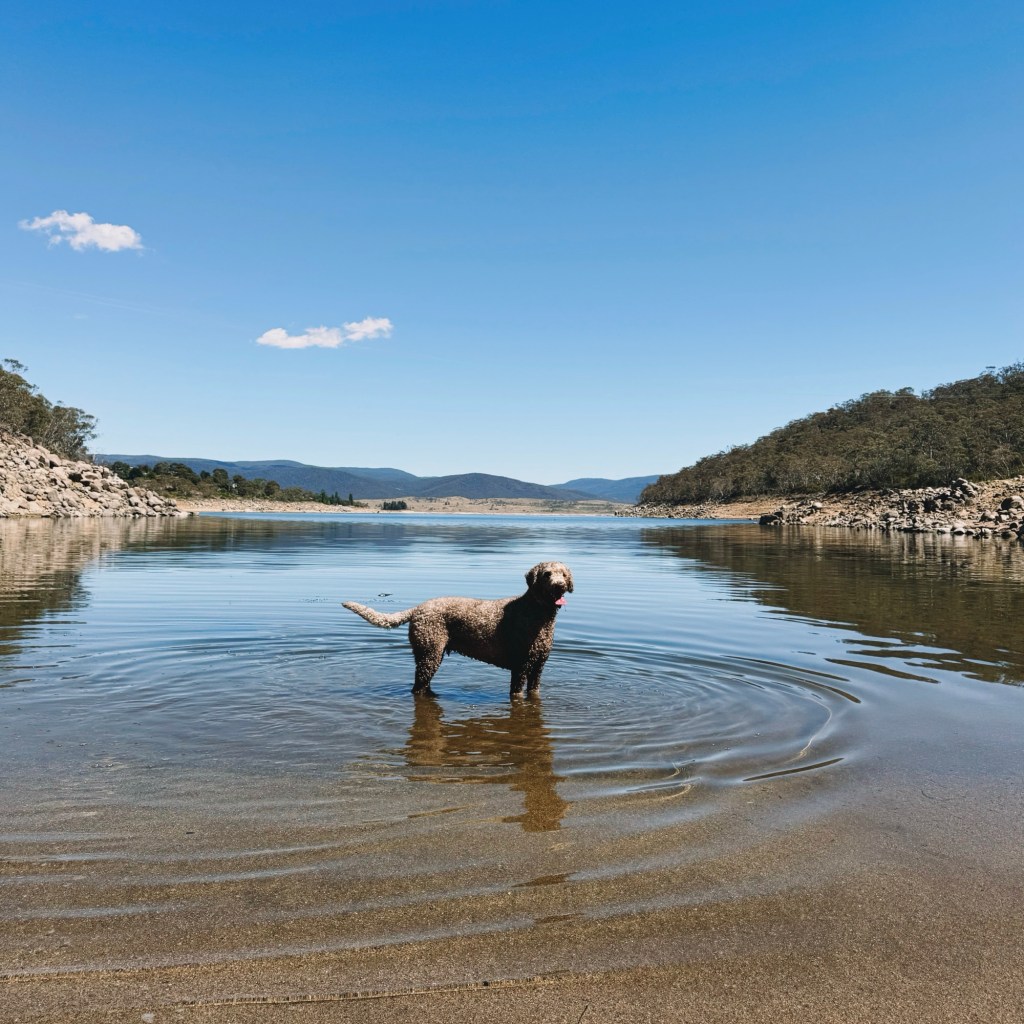 Also, don’t forget other animals; kangaroos, wombats, feral horses, echidnas. And while Bowie’s usually more of a lover than a chaser, I always keep him on a lead when we’re in wildlife territory. Speaking of…