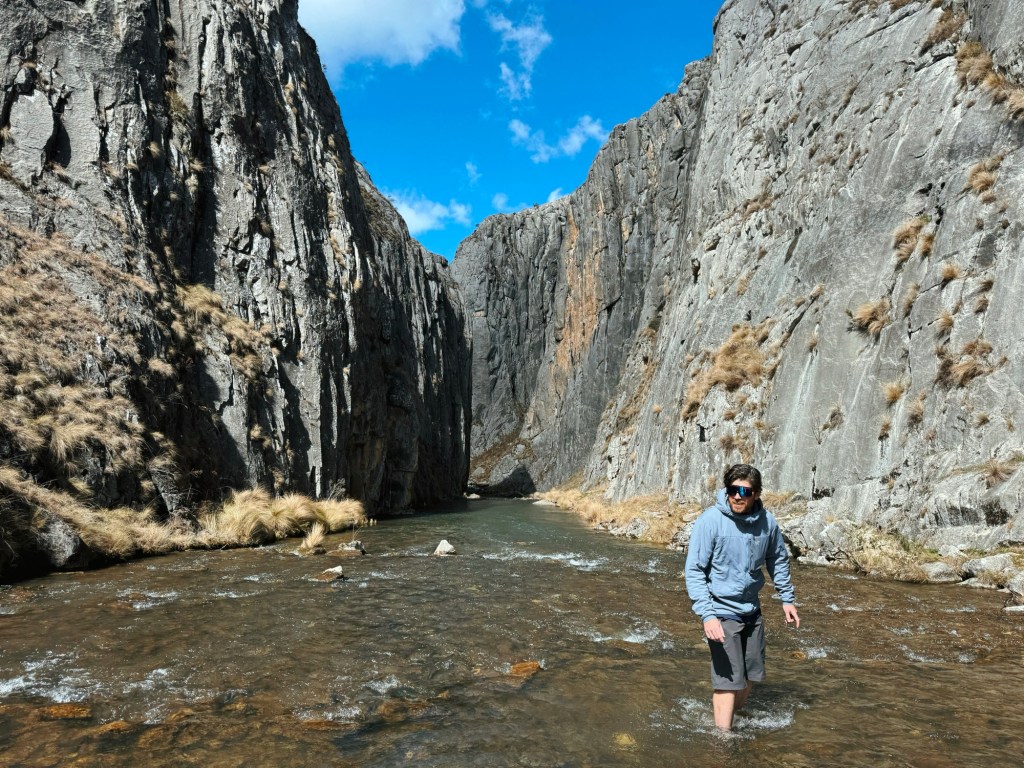 This 4 km sidetrip must be walked but is worth every soggy step. It took us about 1.5-hours return; partly because icy creek crossings slowed us down, and partly because we kept stopping to gape at our surrounds. After about 500 m, the walls close in, rising high on either side into Clarke Gorge. If you’re short on time, you can turn around here, but I highly recommend pushing on to the waterfalls.